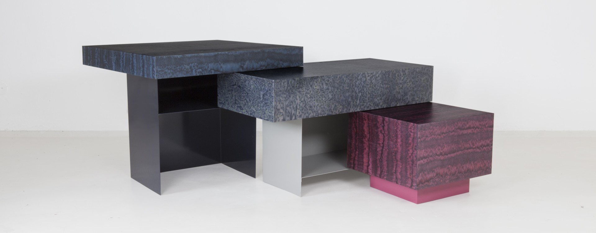 The Trio is made to fit into each other. In the role of soloists they operate in a spectrum between coffee table, sideboard, occasional workplace and by their spotted pattern they are an